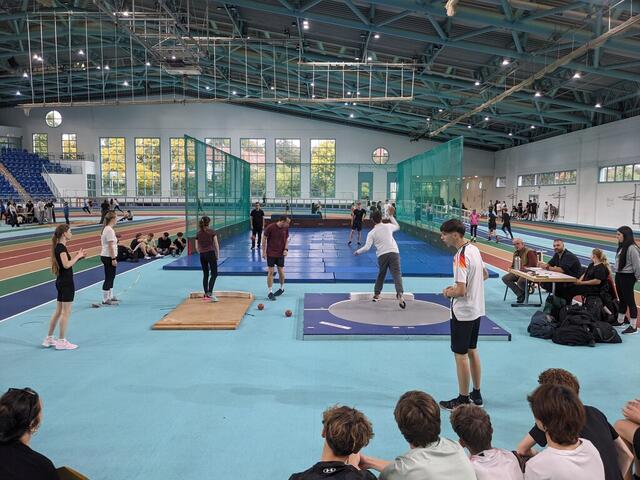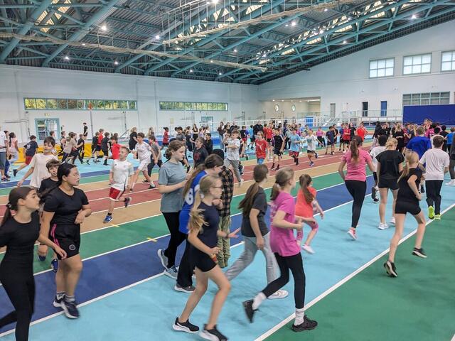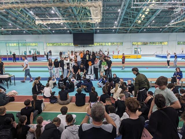 Schon früh 7 Uhr gab es die erste sportliche Erwärmung. Hochmotiviert verfolgten die Klassen ihre Mitschülerinnen und Mitschüler an den einzelnen Stationen. Besonders begeistert waren unsere neuen Fünftklässler, die zum ersten Mal am Sportfest teilnahmen. Dabei feuerten sie lautstark ihre Mitschülerinnen und Mitschüler an, sodass die Turnhalle bebte. Auch durch die vielen fleißigen Helfer der Oberstufe und Lehrerschaft konnte das Sportfest wieder viele Erfolge verzeichnen, was das Urkunden-Schreibbüro zum Glühen brachte. Ein neuerlicher Dank gilt vor allem den Sportlehrkräften, die die Veranstaltung wieder prima geplant haben.