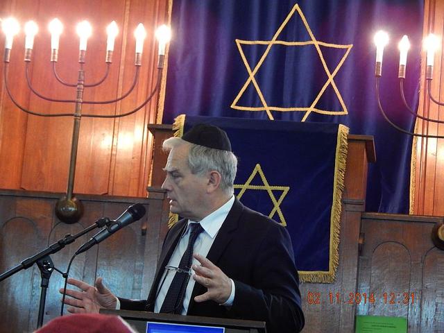 3 - Max Privorozki (Vors. ds Landesverbandes Jüdischer Gemeinden Sachsen-Anhalts und der Jüdischen Gemeinde zu Halle (Saale)) bei seinen einleitenden Worten zur Preisverleihung