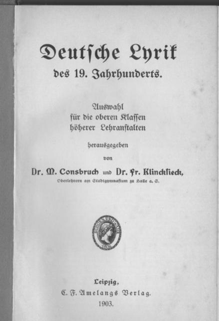 1903 veröffentlichten die obengenannten Lehrer im Amelang Verlag Leipzig das Lehrbuch "Deutsche Lyrik des 19. Jahrhunderts - Auswahl für die oberen Klassen höherer Lehranstalten".