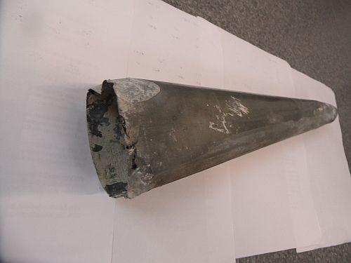 Chancen, die vergeben wurden: Die Sanierung vom Keller bis zum Dach hätte uns die Möglichkeit schaffen müssen, auch bautechnisch Einblick in die Geschichte des Hauses nehmen zu können. Da wurden bestimmt einige interessante "Entdeckungen" gemacht. Leider war weder zum Denkmalschutz noch zu den Bauleuten ein entsprechender Kontakt möglich, der zeitnah dafür geführt hätte, uns auf Außergwöhnliches aufmerksam zu machen. Nach dem Prinzip "Jeder macht sein Ding" liess sich niemand "in die Karten kucken" und war leider nicht an einer besonders engen Zusammenarbeit mit denen bedacht, die dann wieder in dem Haus arbeiten werden. Schade! Es gibt "nur" zwei Fundstücke, die dem Schulleiter übergeben wurden und die hier mit vorgestellt werden. Ein "Blechtrichter" aus ganz alter Zeit (eingemauert neben einer Tür zu einem Unterrichtsraum) und eine leere Schnapsflasche aus DDR-Zeiten, in einer zugemauerten Tür gefunden.