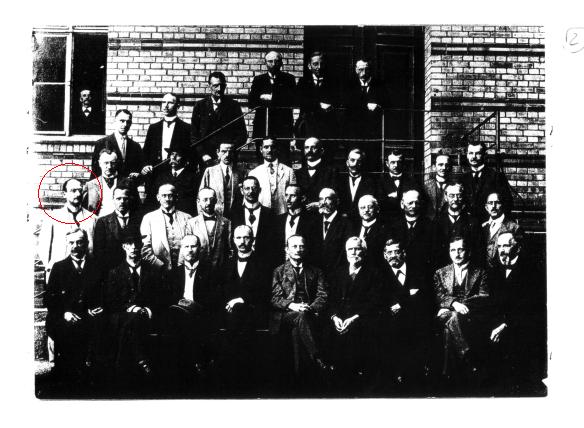 In 1999, after an honory doctorate at Martin Luther University Halle/Wittenberg, I asked the Stadtgymnasium for Lörcher's picture. They got me an article by him written long ago, but no picture; his name was no longer known in Halle." Auf dem nebenstehenden Kollegiumsfoto von Ostern 1920 ist - nach den Angaben auf der Rückseite des Fotos - Adolf Lörcher mit abgelichtet worden.