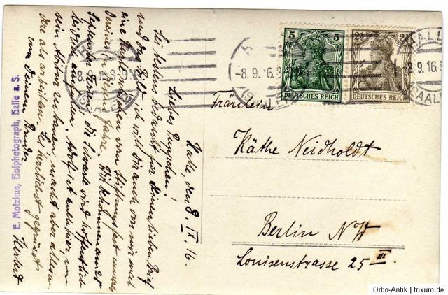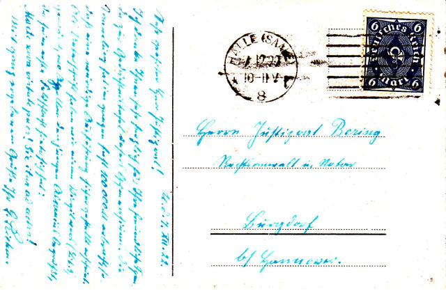 *** Wahrscheinlich gerichtet an Georg Bering, Abiturient des Stadtgymnasiums Nr. 211 von Michaelis 1882, Justizrat, Rechtsanwalt und Notar, gest. 26.05.1930 auf Gut Gaudichsroda b. Mutzschen (Leipzig)