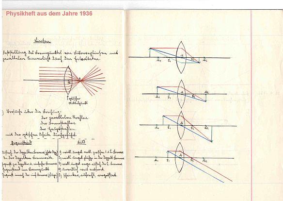 8 - Aus einem Physikheft aus dem Jahre 1936; Thema "Linsen"