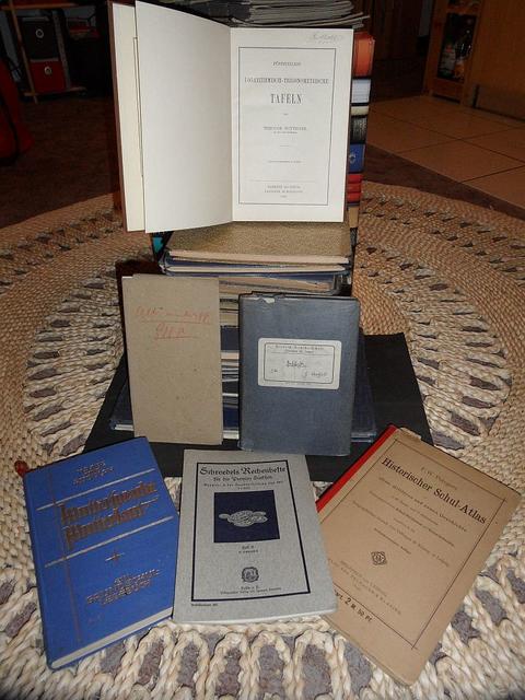 2 - Die dem historischen Archiv übergebenen Schulbücher, gestapelt (23 Stück)