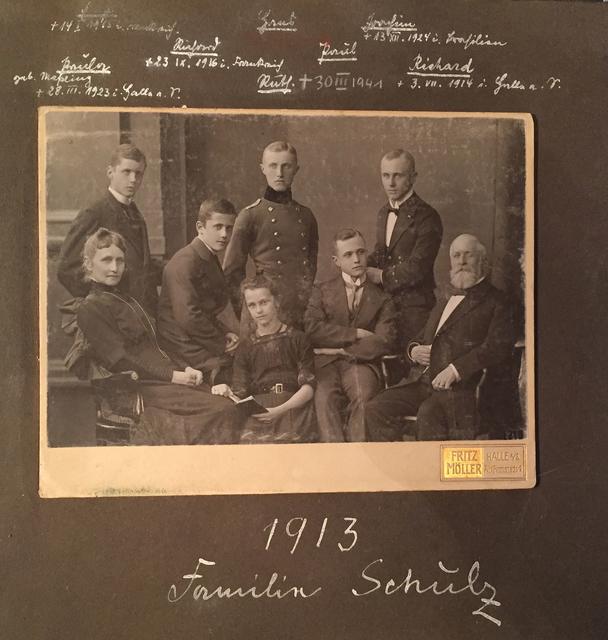 Ausgangspunkt soll das Familienfoto (rechts, Foto 1) aus dem Familienalbum sein. Aufgenommen 1913, v o r dem Krieg, in Friedenszeiten.