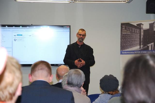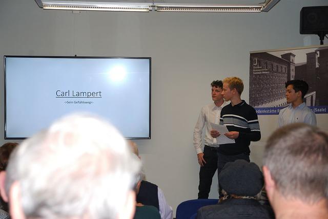 Nun fand in der Gedenkstätte "Roter Ochse" am 13.11.19 eine Präsentations- und Gedenkveranstaltung zum katholischen Priester Carl Lampert statt, der im November 1944 im Roten Ochsen hingerichtet wurde. Anwesend waren Schüler einer 10. Klasse des Elisabeth-Gymnasiums, Angehörige der katholischen Gemeinde "Carl Lampert" (Gütchenstr. in Halle) sowie als Gast Frau Irmgard Sinner aus Lübeck, die Tochter des damaligen führenden NS-Militärrichters gegen Carl Lampert und andere, Werner Lueben. Die Anwesenheit von Frau Sinner war Grund für uns, an dieser Veranstaltung teilzunehmen. Es gab die Möglichkeit für zwei kurze Gespräche mit Frau Sinner, wir konnten ein Foto machen und Kontaktdaten austauschen.